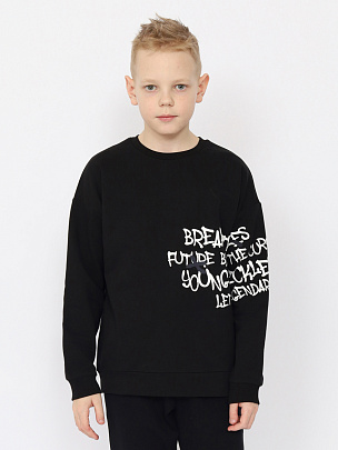 Воротник и манжеты из материала с эластаном.Разрезы в боковых швах.Принт по переду "Гравитация"