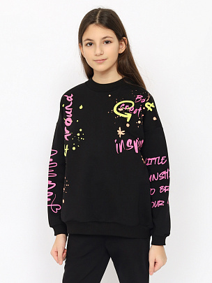 Джемпер с длинными рукавами и притачным поясом. Рукава втачные с манжетами по низу. Воротник, манжеты и пояс выполнены из полотна с эластаном. Перед и спинка декорированы принтом "Оставайся хладнокровным, следуй своим собственным правилам".