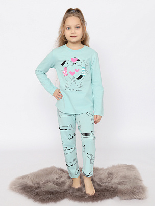 Пижама для девочки (джемпер, брюки) светло-бирюзовая