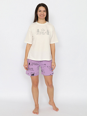 Пижама женская (футболка, шорты) экрю