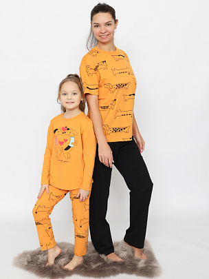 Пижама для девочки (футболка, брюки) охра