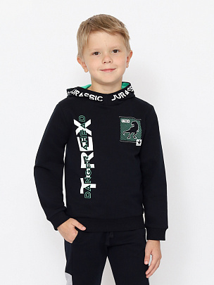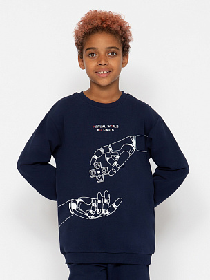 Джемпер с длинными рукавами, притачным поясом и манжетами. Рукав-реглан, отрезной, нижняя часть рукава декорирована принтом "Киберпространство".