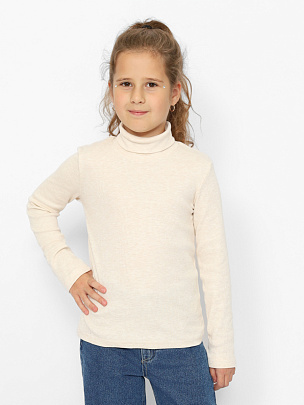 Водолазка с небольшим принтом на спинке для девочки. Модель прилегающего силуэта, с воротником-стойкой с отворотом и длинными рукавами.