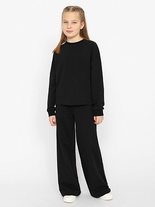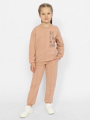 Джемпер для девочки с модным принтом на спинке и нашивкой на рукаве (надпись: "Улыбнись. Настоящий друг всегда в твоем сердце"). Крой оверсайз с заниженной линией плеча, не сковывает движения, позволяя ребенку быть активным. Модель дополнена круглым вырезом горловины и длинными рукавами. Воротник и манжеты выполнены из полотна с эластаном. В боковых швах по низу изделия разрезы.