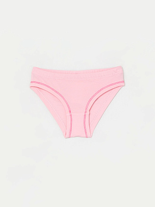Трусы из гладкокрашенного полотна. Верх трусов и проймы ножек обработаны плоским швом вподгибку. По верху одновременно проложена резинка.